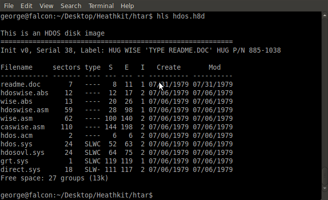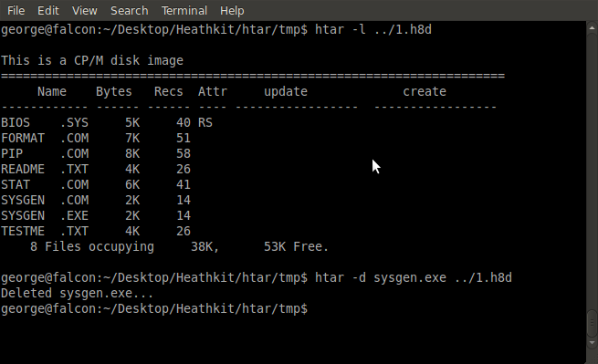 Htar is a tool for manipulating H8D floppy images. It allows you to perform the following actions on an H8D archive file.